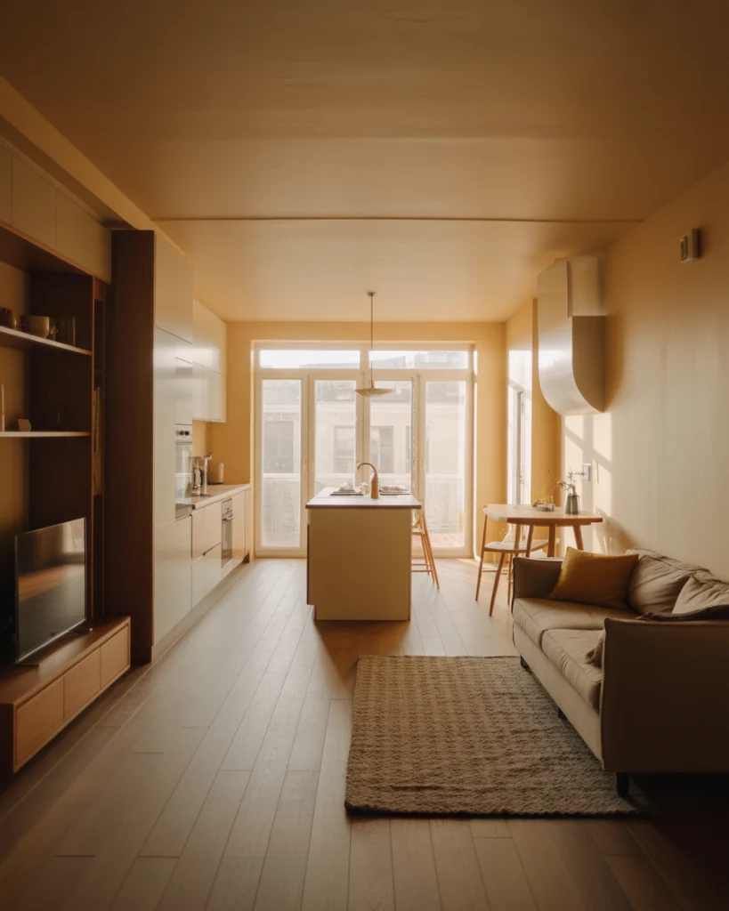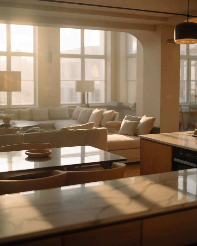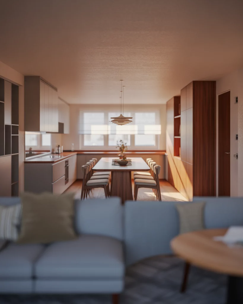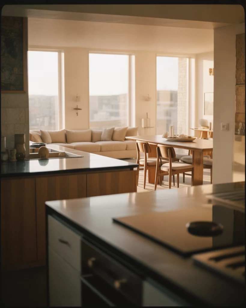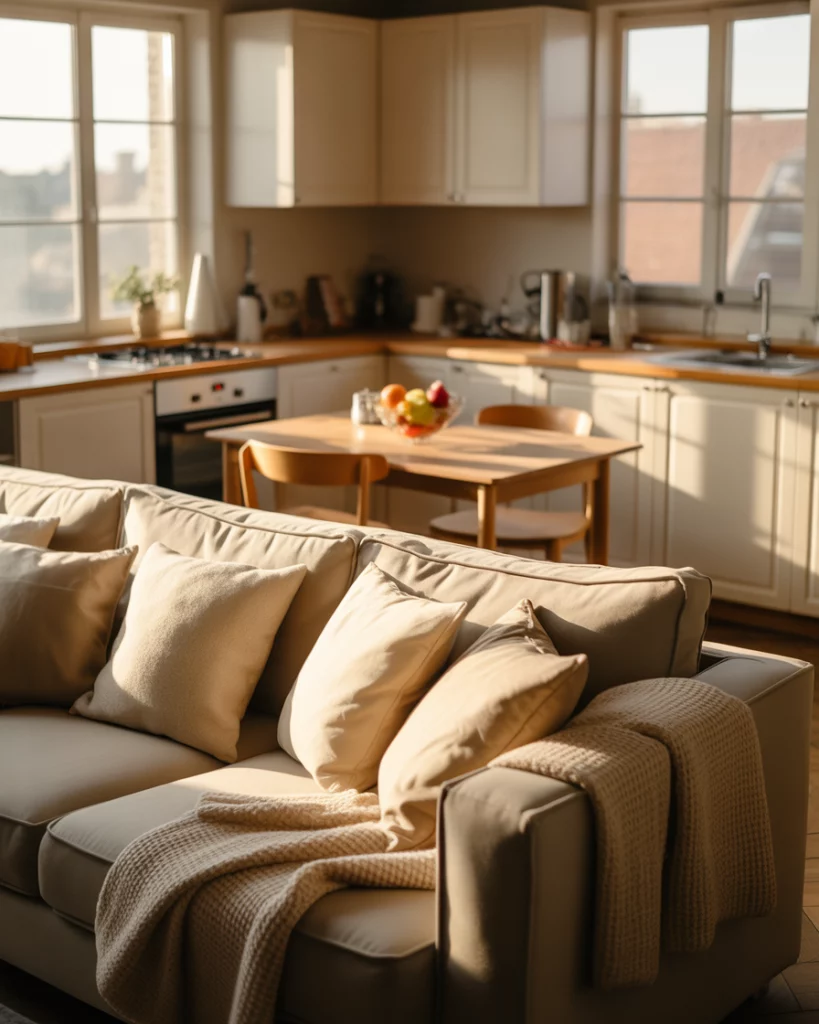 In a lived-in apartment, the open kitchen living room thrives on comfort-first ideas. A relaxed couch, practical finishes, and flexible dining pieces reflect how people actually use the space—eating, working, relaxing, often all at once. A common mistake is chasing a showroom look that doesn’t match daily habits. Choosing durable fabrics and forgiving finishes keeps the apartment feeling welcoming long after the initial styling phase.