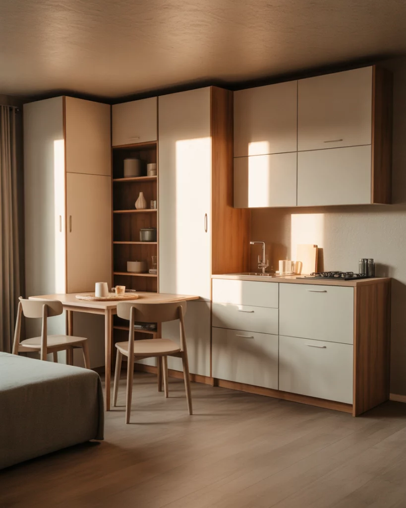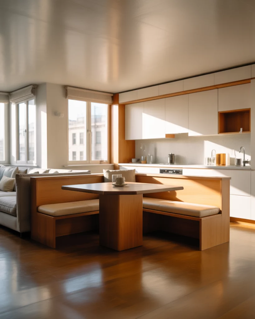 A small apartment open kitchen living room benefits from a carefully planned dining room layout. Bistros tables, banquettes, or wall-adjacent seating help preserve flow while still offering a proper eating area. In 2026, compact dining feels intentional rather than like an afterthought. This works best in urban apartments where every square foot matters. Choosing furniture that hugs walls keeps the center of the room open and visually calm.