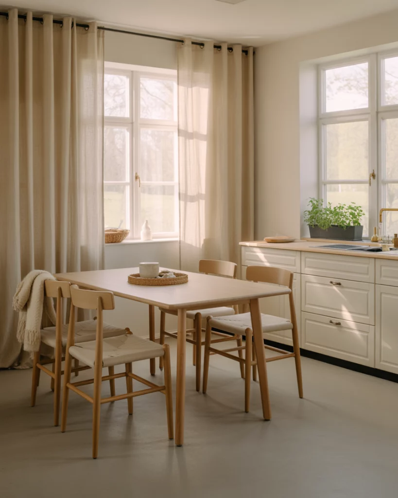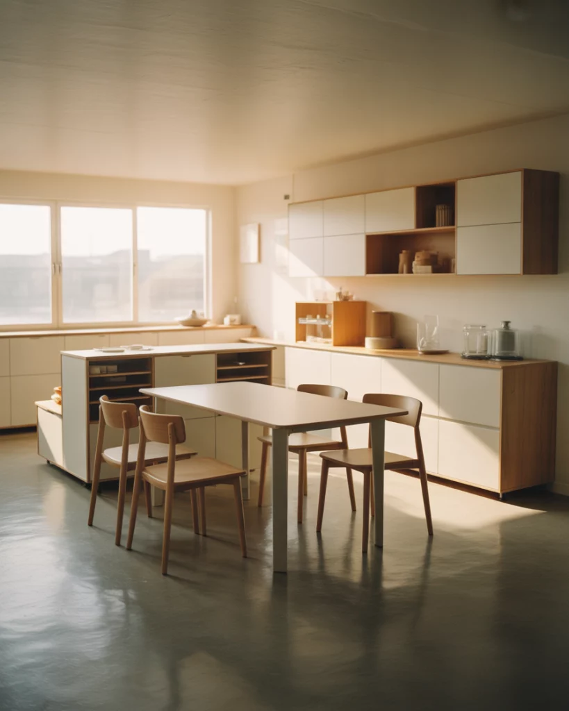 A Scandinavian influence brings clarity to the transition between kitchen and dining room. Clean lines, light finishes, and restrained decor keep the open kitchen living room feeling bright, even in darker climates or compact homes. Experts point out that restraint is key. Limiting the color palette allows the eye to move smoothly across zones, which is essential in open plans.