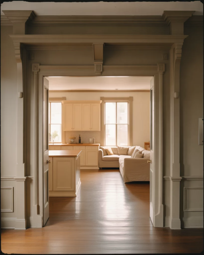 In older buildings, cased openings show a bridge between period detail and modern open plan. These framed openings keep the kitchen connected to the living and maintain the original design details. This is an approach architect’s recommend on renovations. It retains the character and increases light and flow functionality.