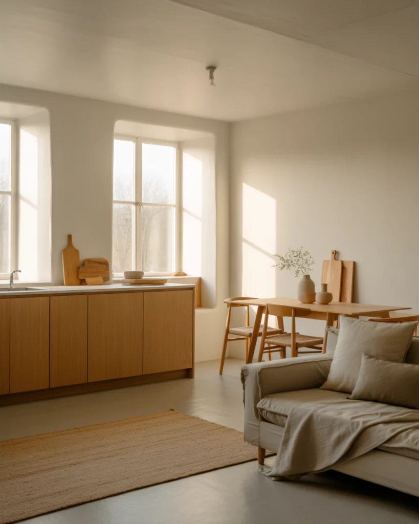 A Scandinavian fit for the style of the pale wood and matte finish decorating, brings warmth and comfort to an open kitchen and living room, and most especially an apartment. This space can be visually busy. In 2026, the style is a warmer minimalist style of textured materials over stark emptiness. A friend of mine recently renovated her rental using this look, and changing only the lighting and new textiles. Without changing the layout, she was surprised to feel how much calmer the space felt. This is proof that the tone of the room is just as important as the structure.