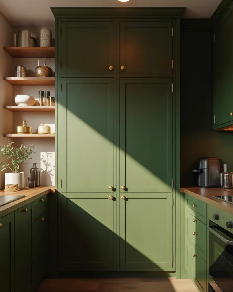 Color is playing a bigger role in pantry cabinet 2026 inspiration. Shades like green, blue, and black turn pantry cabinets into focal points rather than background storage. These choices reflect a shift toward expressive, personality-driven kitchens. An expert-style takeaway is balance: bold pantry colors work best when surrounding cabinetry stays neutral. This keeps the space timeless while still allowing homeowners to express style through one intentional, standout element.
