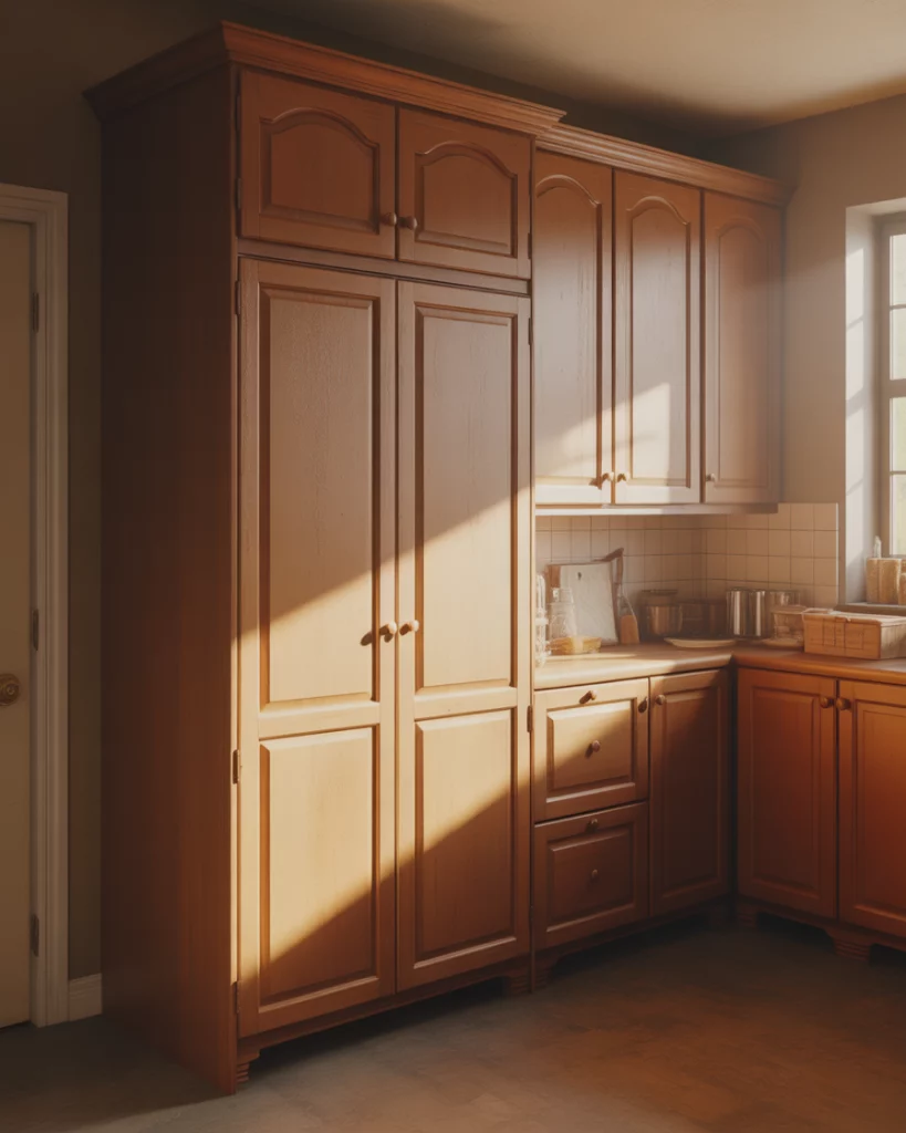 Freestanding pantry cabinets are trending as flexible, renter-friendly pantry cabinet 2026 options. These freestanding or standalone pieces often resemble armoires, blending easily into kitchens without full renovation. They’re especially popular for homes that need extra kitchen food storage ideas without permanent installation. A budget angle makes these appealing: many freestanding pantries cost less than custom cabinetry and can move with you. Homeowners often start with one piece and upgrade later, making it a low-risk way to test how much pantry space they actually use.