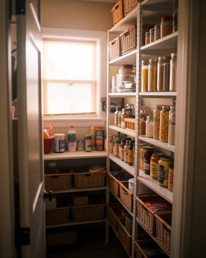 A small walk-in pantry suits many suburban floor plans where space exists but isn’t abundant. These pantries prioritize efficiency over size, using adjustable shelving and labeled zones to support family routines. From a practical standpoint, these pantries shine when designed around weekly grocery habits. Grouping snacks, baking, and staples reduces time spent searching and restocking.