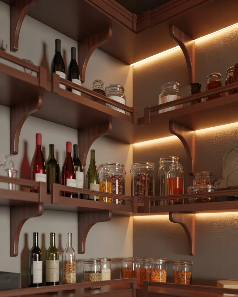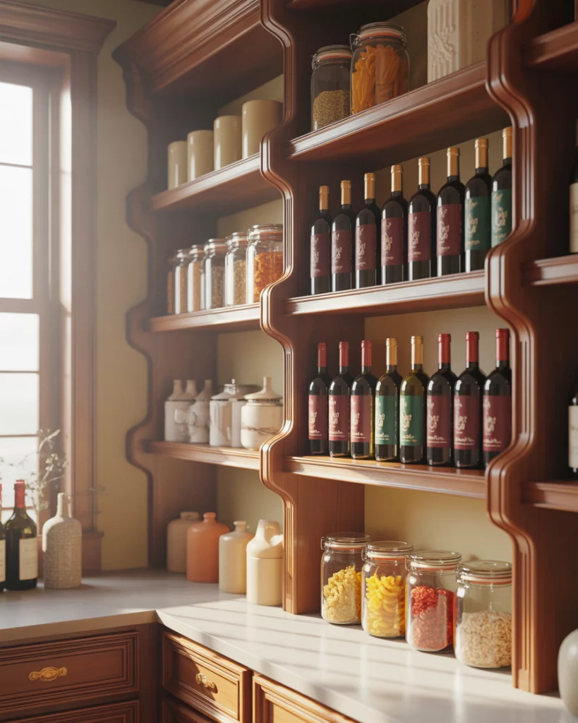 An open pantry suits homes where entertaining is frequent. Display-worthy containers, wine storage, and accessible snacks make the pantry part of the social interior rather than a hidden utility. Real homeowner behavior shows that open pantries encourage tidiness. When guests can see the space, people naturally maintain order without constant effort.