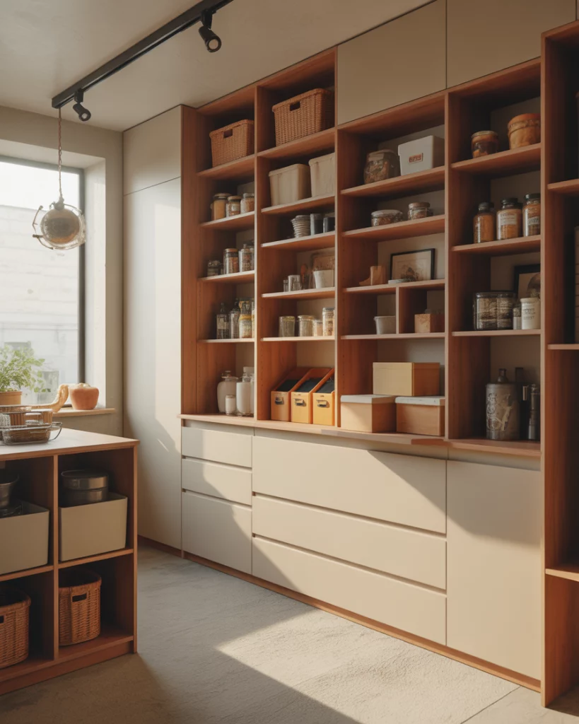 A walk-in pantry isn’t only for large houses anymore. With smart small space planning and efficient storage, even modest homes can support a compact but highly functional pantry zone that feels deliberate. Where this works best is in homes with unused corners or underutilized hallway space. Even a few extra feet can dramatically reduce kitchen cabinet overload.