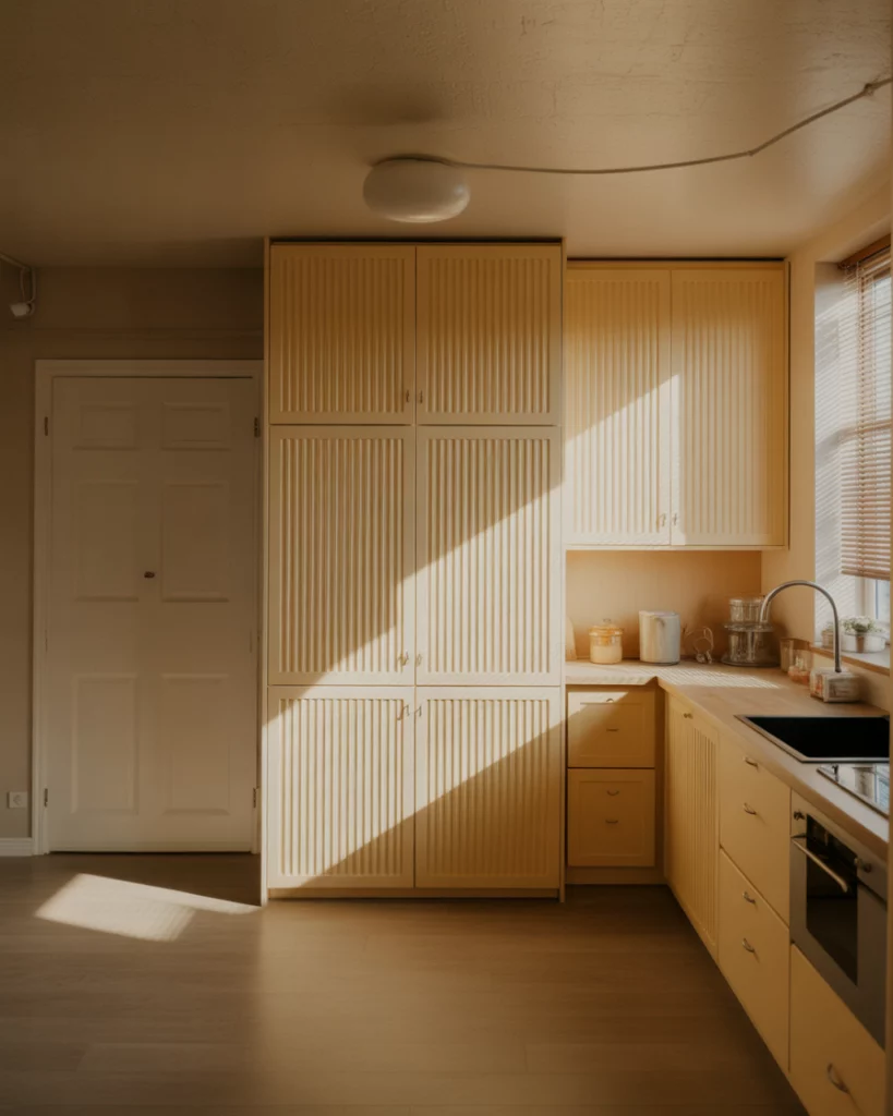 In a narrow kitchen, tall cabinets designed specifically for pantry use can replace multiple smaller storage areas. This approach streamlines organization while keeping food accessible without crowding the workspace. Where this works best is in city apartments and older homes. Consolidating pantry items into one vertical unit often frees up counter and drawer space elsewhere.