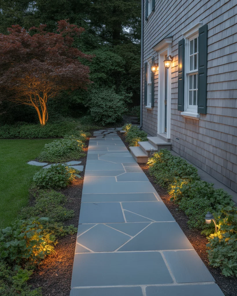 10. Diamond-Cut Bluestone Walkway for Side of House Elegance
