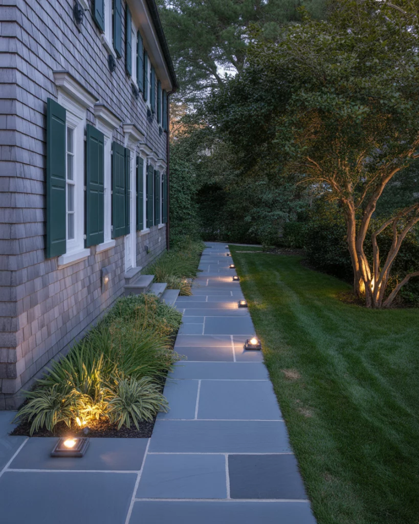 Elevate your ideas side of house with bluestone cut into subtle diamond shapes. This unique layout feels sophisticated, yet grounded. Bluestone costs are just a lovely, real blue-grey that braces well with white siding or black briefing. Throw in some creep vines on the edge and low lighting and you will be adding a secret garden path. It’s a favorite among East Coast landscape designers.