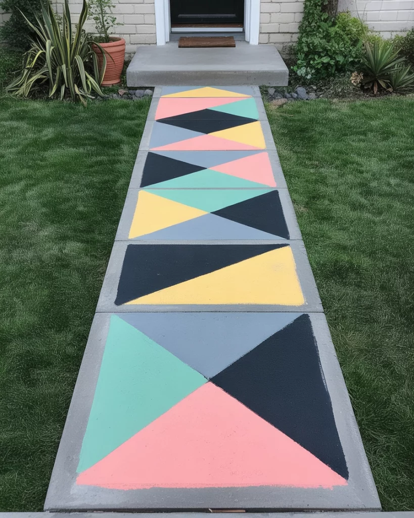20. DIY Painted Concrete Pavers in Geometric Patterns