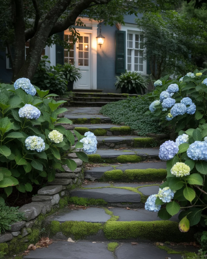 If your house sits on a slight incline, using raised granite pavers as steps creates a dramatic front entrance. This big material is characterized by strength and permanence that suits colonial or craftsmen houses. The feeling of the smooth stone is to be contrasted with the wooden handrail or iron balustrades. A line of flowers or shrubs at each step softens the structure and guides visitors naturally to your front door.