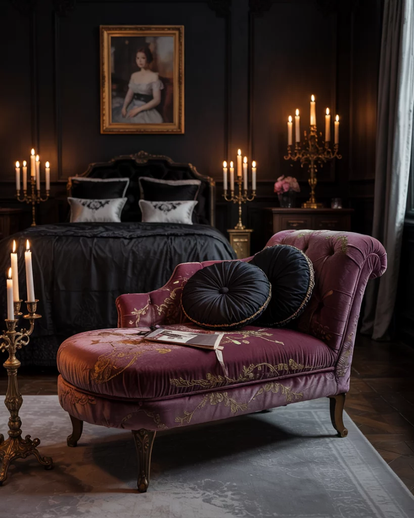 When it comes to building intimacy, nothing says mystery and allure like a dark, moody atmosphere with a touch of Gothic drama. Darker tones such as black, burgundy or navy create a tone with velvet throws, antique gold finishes and mirrors with an ornate style. Place iron candle holders, elaborate candles, and decorate your decor like it is a secret getaway. It’s perfect for date night or a luxurious surprise for him birthday.