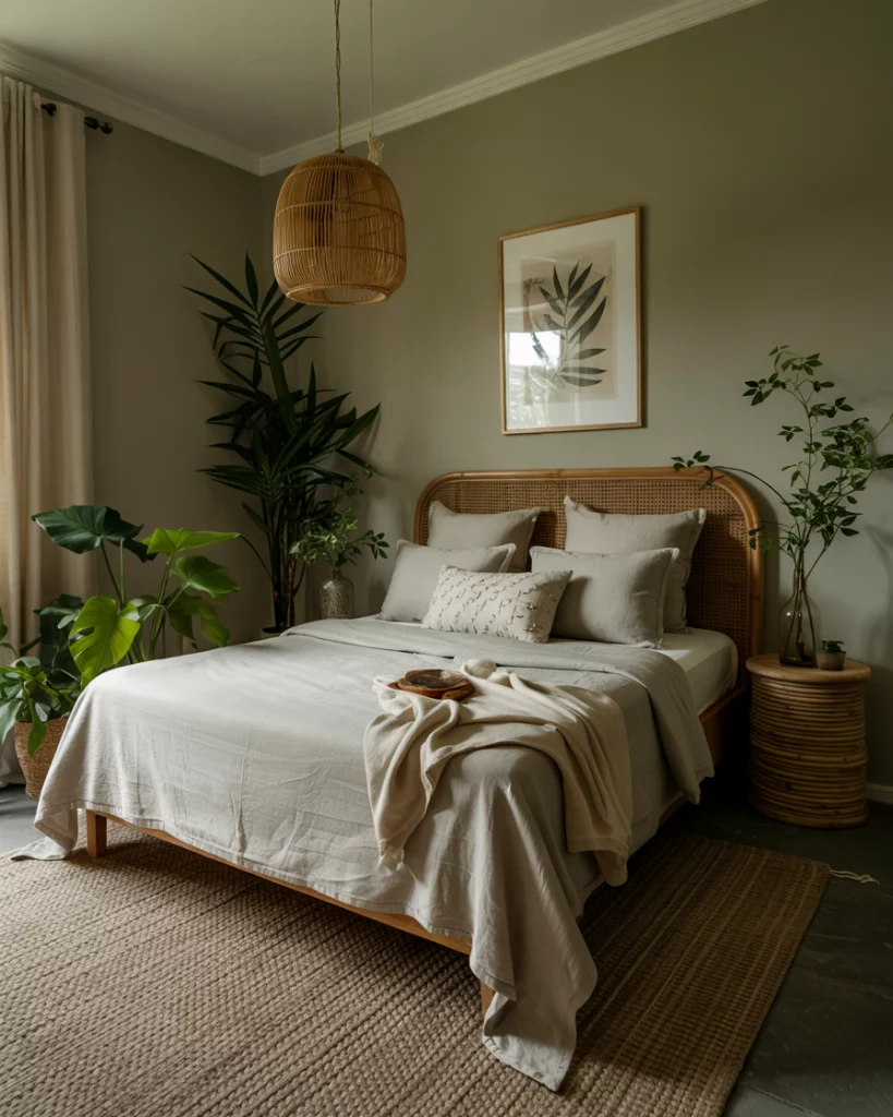 Green is the color of renewal, calm, and natural connection—ideal for couples love that values peace. Consider subdued sage or olive tone, natural linen bed covers and accessories of bamboo or stone. Add one or two plants or a bonsai to get a meditative mood. This look is subtle but grounding—perfect for anniversary reflection or restful date night vibes.