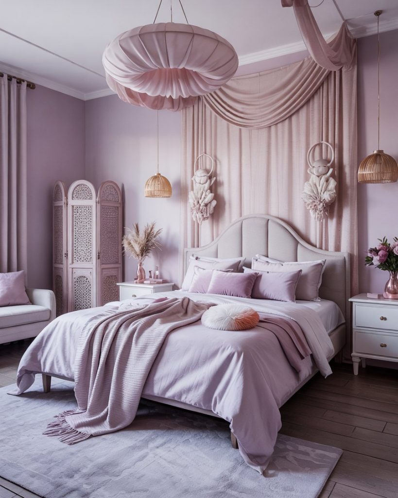 Pastel color schemes like lavender, soft peach, or dusty blue evoke a dreamlike comfort that’s soothing and romantic. Ideal with women who fancy mild interiors, and no less amusing to couples who like soft textures and balance. Pair with diffused lighting, soft rugs, and layered textiles. Ideal for valentines or peaceful mornings after.