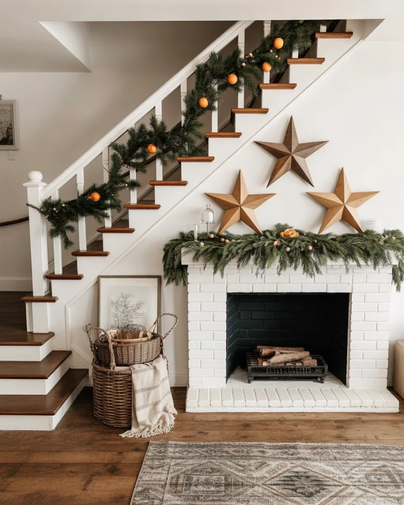 There is nothing like hanging fresh evergreen garlands on mantels and staircases to make things feel more homey. In country holiday decorating ideas, this appearance gives the immediate impression of a farmhouse yet it is simple and classy. Include details such as wood stars or dried oranges as a vintage touch, and, in case you want more neutral colour schemes, incorporate dulled ribbons. The timeless decor is particularly effective as living room ideas, bringing the nature into the core of the house. To the diy enthusiast, making your own garland by using pine and eucalyptus branches is a cheap but beautiful task.