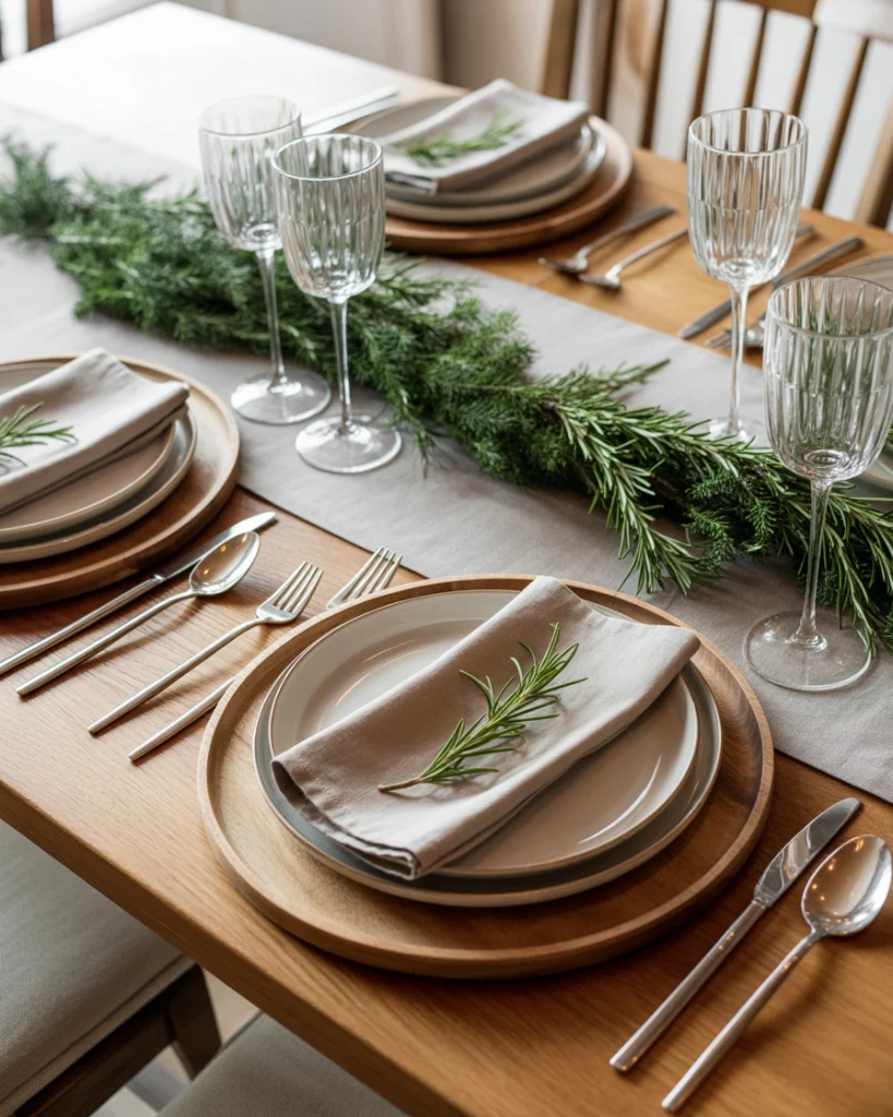 Special attention should be paid to the holiday meals, and the rustic table setting is both beautiful and comfortable. Linen napkins, wooden chargers and sprigs of rosemary provide simple, neutral, and cosy elegance. These concepts diy crafts are simple to gather together and get visitors to feel at home. Incorporating details such as old silverware or new glassware brings out a balance that makes the space friendly and personal. These arrangements are a great living room dining room or farmhouse kitchen idea.