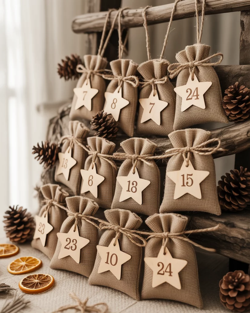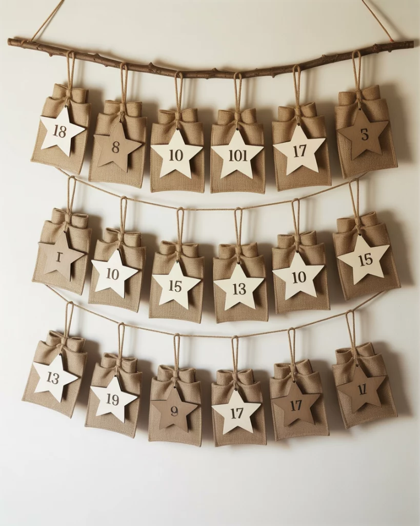 Advent calendars do not have to be kid friendly- they can be gorgeous adult diy projects as well. A farmhouse take could be small burlap bags suspended on a branch of wood, with snacks or notes. This gives a home-like and intimate feel to country holiday decorating concepts. Neutral fabrics or white paint used to number it makes it simple and festive. I have once seen the calendar of a friend, done with little wood stars as number tags, and it was so pretty and useful. Ideal in kitchens or corners of the living room.