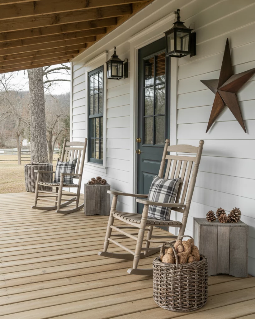 15. Farmhouse Detailed Rustic Outdoor Porch.