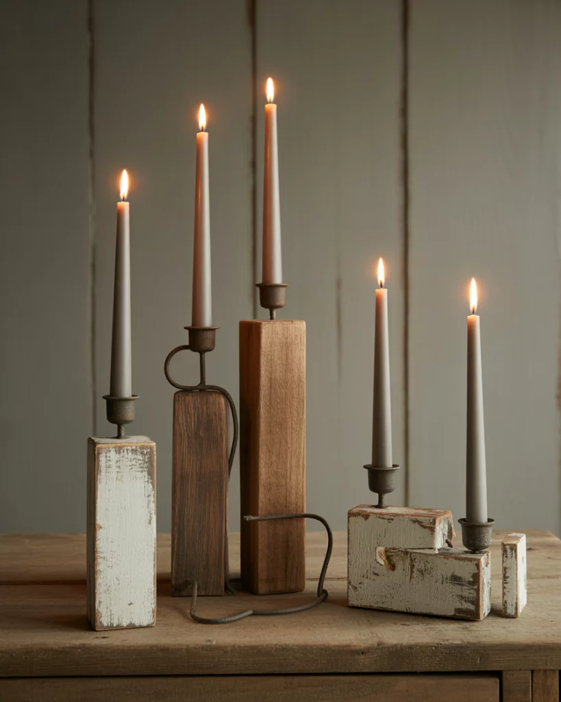 Reclaimed wood candle holders or old metal candle holders are handcrafted and create an instant ambience. These may be concepts diy crafts out of old logs or natural stones. Their neutral appearance makes them flexible where they can be used in mantels, dining tables or living room ideas. The decorating gurus at Better Homes & Gardens frequently point out the effect of candles in the holidays and rustic holders to increase the effect. A low-cost, easy to install solution to any home.