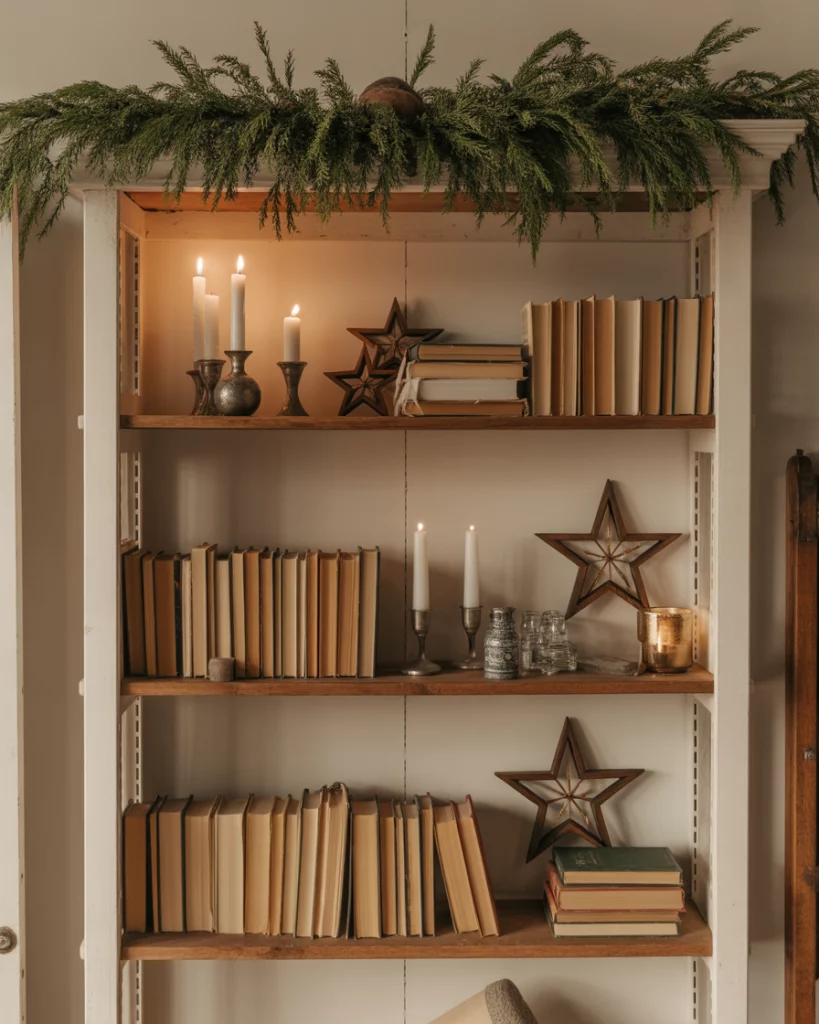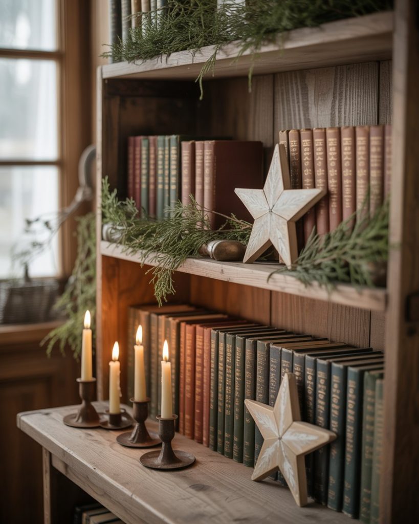 Open shelves are ideal locations where country holiday decorating ideas can be put into focus. Pile old books, put branches of natural pine and sprinkle with small wood stars or candles. It is an easy diy method of making shelves look festive without clutter. Neutral styling is a favorite among many homeowners because they need to maintain a clean and contemporary appearance and at the same time get the warm farmhouse appearance. These shelves can be used as practical and decorative, which is why they are excellent in living rooms or kitchens.