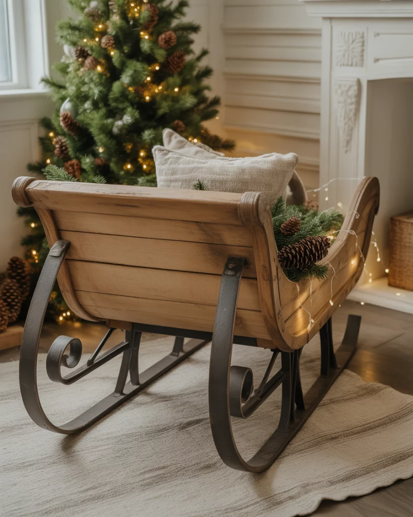 The use of an old sleigh as a decor has a vintage flair and country holiday decorating concepts. It can be put close to the tree or the door and be stuffed with warm blankets, natural pinecones, or white fairy lights. This is among such concepts diy crafts that evokes childhood nostalgia without being outdated. A sleigh is also an unusual focus in a farmhouse porch or living room, and can be both practical and inspirational.