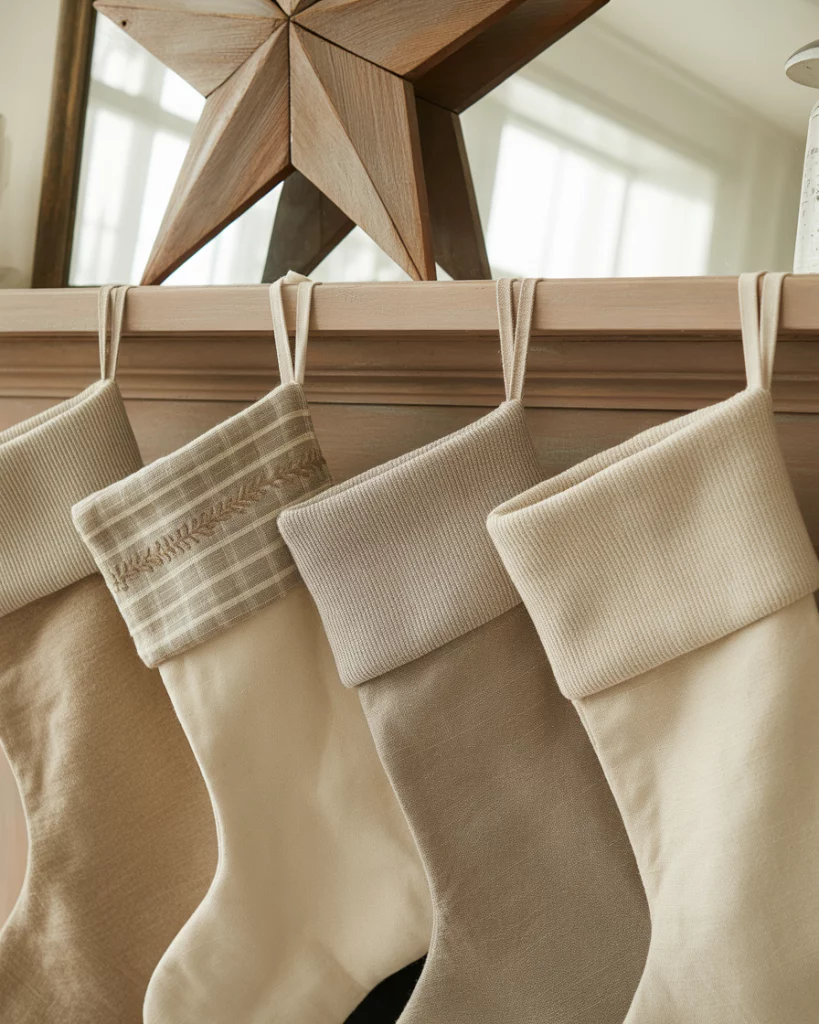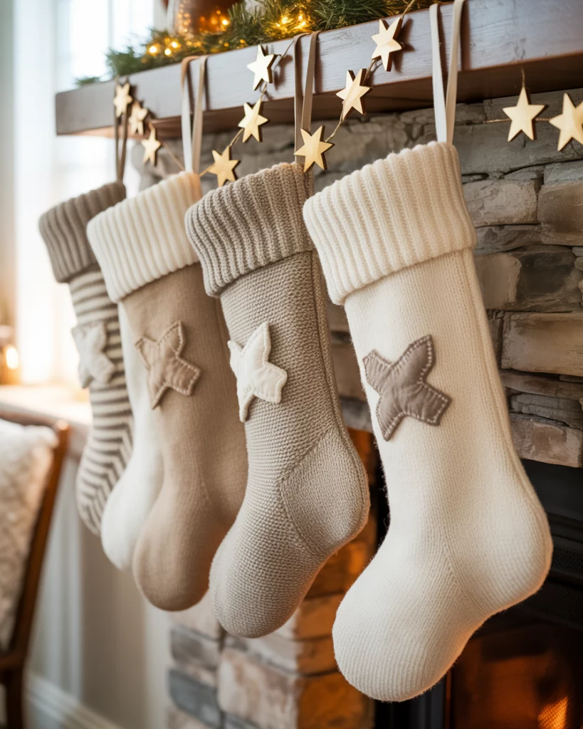 A favourite trend is to have stockings hung around the fire, which in 2025 is dominated by soft neutral colours such as cream, taupe, and grey. The stockings are simple and sophisticated at the same time, and they can blend well with the country holiday decorating ideas. Embroider a little or make diy crafts such as hand-sewn tassels to personalise it. An individual memory: once my aunt sewed little wooden stars on every stocking, and the homemade touch immediately made the room cosier. This is a great idea as living room decor.