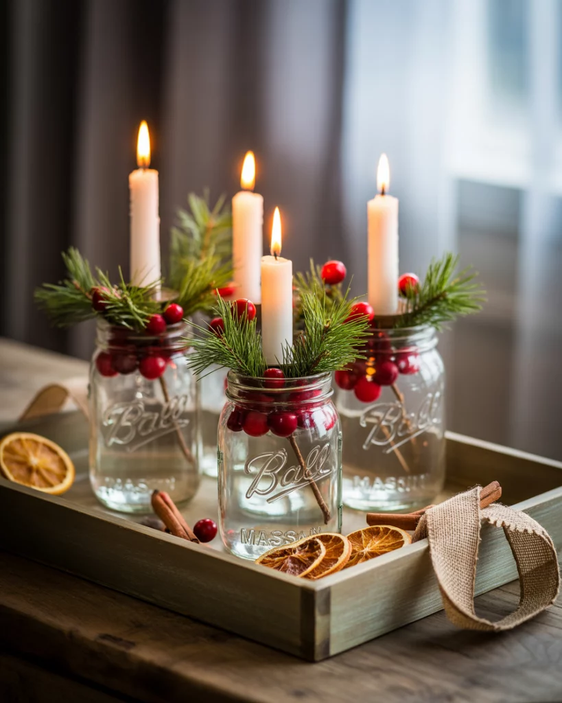 Mason jar crafts will never go out of fashion, and with ideas diy, snow globes make the ideal rustic Christmas decor. Stuff jars with wood stars, faux snow or miniature farmhouse trees. These jars make homey holiday scenes at mantels or shelves. Their simplicity is maintained by using neutral tones and white bases, yet they have the vintage feel. They are very popular with many families who like to make them together and this makes it personal and heartwarming.