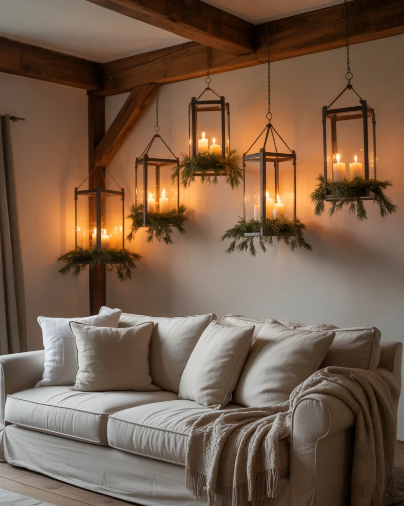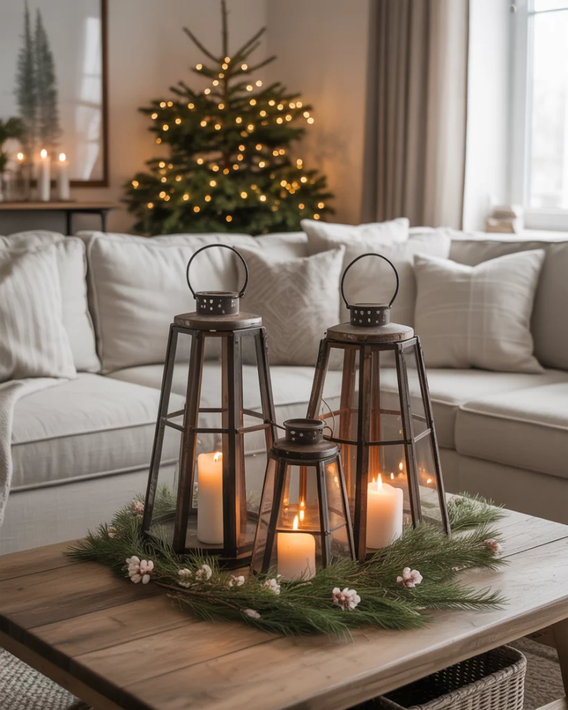 Lanterns Lanterns have long been a classic accessory of country holiday decorating concepts, and create a warm and homely effect during winter evenings. A combination of metal or wooden lanterns and candles will form a neutral and friendly environment. Add pine boughs or ribbon to make it festal. When you like ideas diy, old lanterns can be repurposed with paint or old handles. I have repainted my grandmothers lanterns in dilapidated white, and the effect was surprisingly contemporary and yet with that farmhouse vibe.