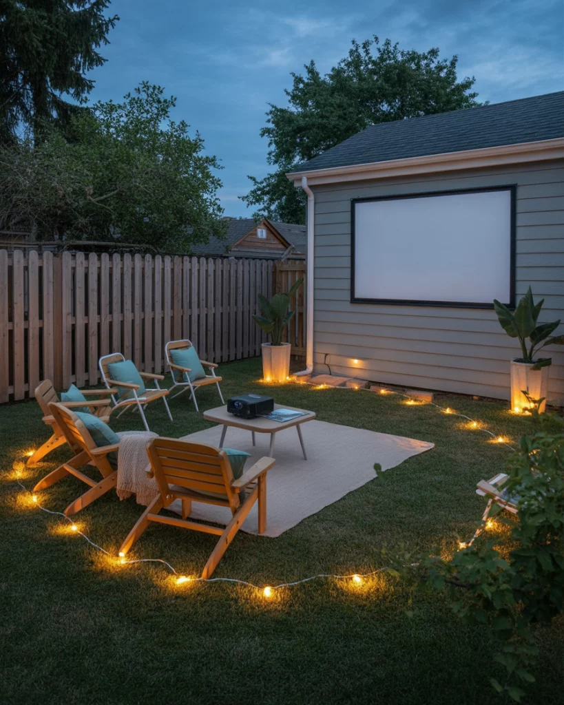 Create a DIY movie theater in your backyard and turn it into a kid friendly and magical place to be. All you need is a white sheet or projector screen, a small projector, and comfortable seating, such as softer seating. A nice a low-budget diy projects thought which can be used to rent or a permanent residence. Ideal summer night and birthday celebrations.