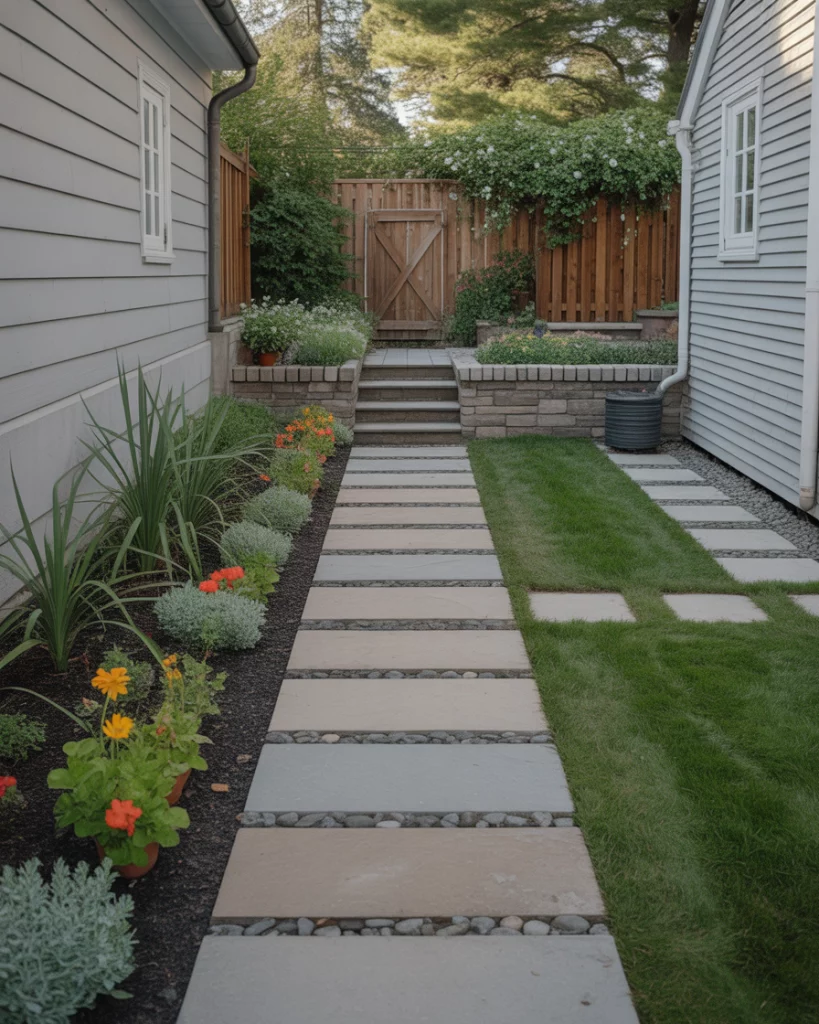 The placement of pavers in a small yard may assist in the visual and practical order of the space. Provide paths to a sitting area, garden or shed. This form of landscaping establishes areas and provides organization – particularly when the yard is very disorganized. Paver paths are a low cost cheap diy project that is durable.