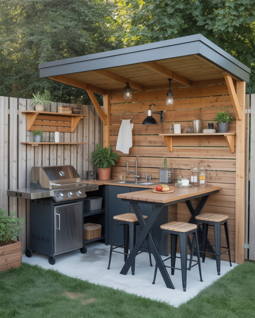 You can make your backyard the Home to the entertainer with a small grilling station or mini outdoor kitchen. A countertop, mini fridge or portable grill is very useful even in a small area. Select renter friendly, low cost easy diy projects such as prep tables made of cinder block counters or prep tables that can be folded. Ideal to cook out or to dine with friends in the evening.