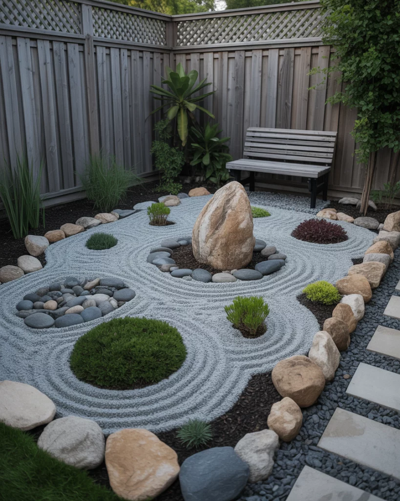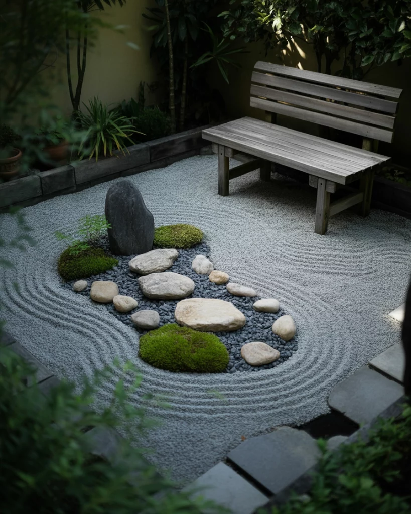 To relax, build a Zen-style garden of sand, rocks, and little ornamentation. It needs little care, no lawn and it is within the budget of a diy easily built garden. Include a bench to meditate or bamboo water feature. It’s a serene concept in the mind of those yearning to spend quiet moments outdoors without excessive maintenance.