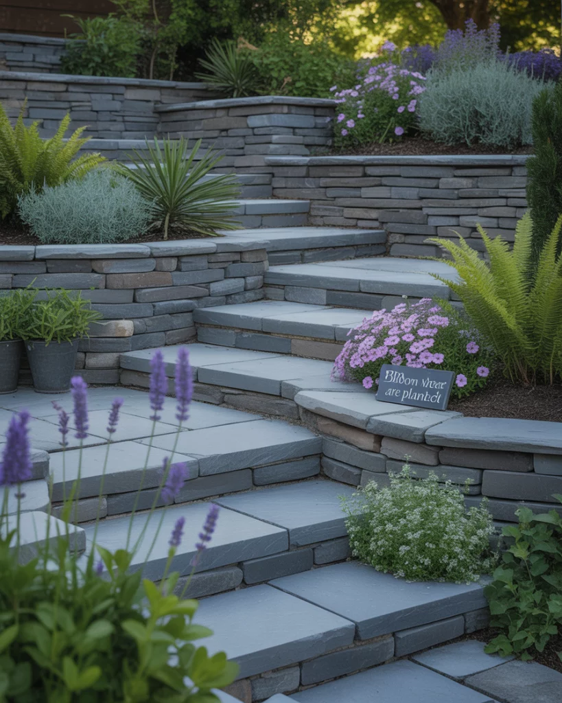 Do not consider a backyard to be flat. A sloping yard may be terraced to a level with pavers or natural stones. They can be used at each tier with a specific purpose in mind, such as a children friendly playground, a simple diy garden design with a tight budget, or a comfortable seating area. Bunny Guinness is a garden designer who advises that elevation changes be used to introduce visual interest.