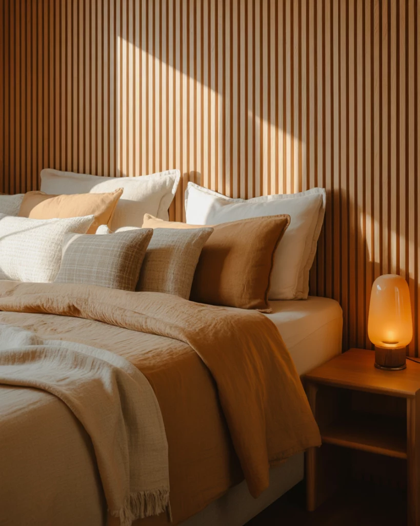 A small wood-slat feature wall instantly adds warmth without overwhelming the room. It taps into rustic charm while pairing easily with cabinets for cozy setups, cozy schemes, or subtle inspirations. Even one wall can shift the mood, creating a snug retreat that feels intentional and lived-in.