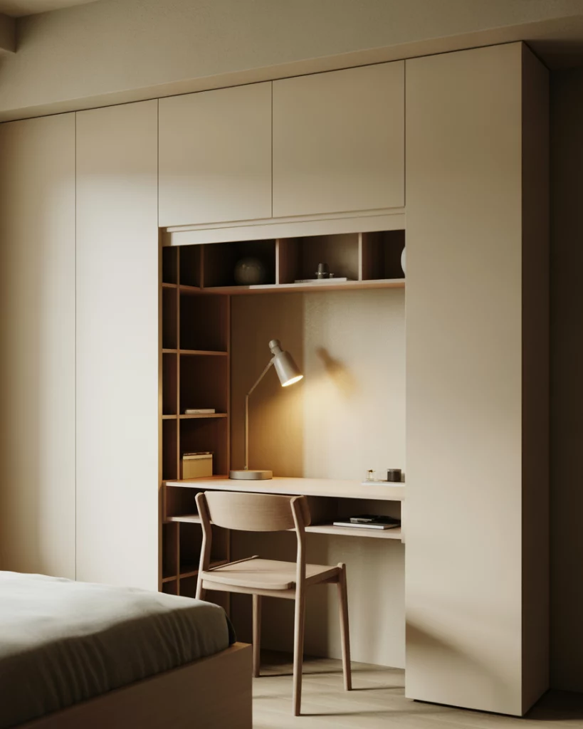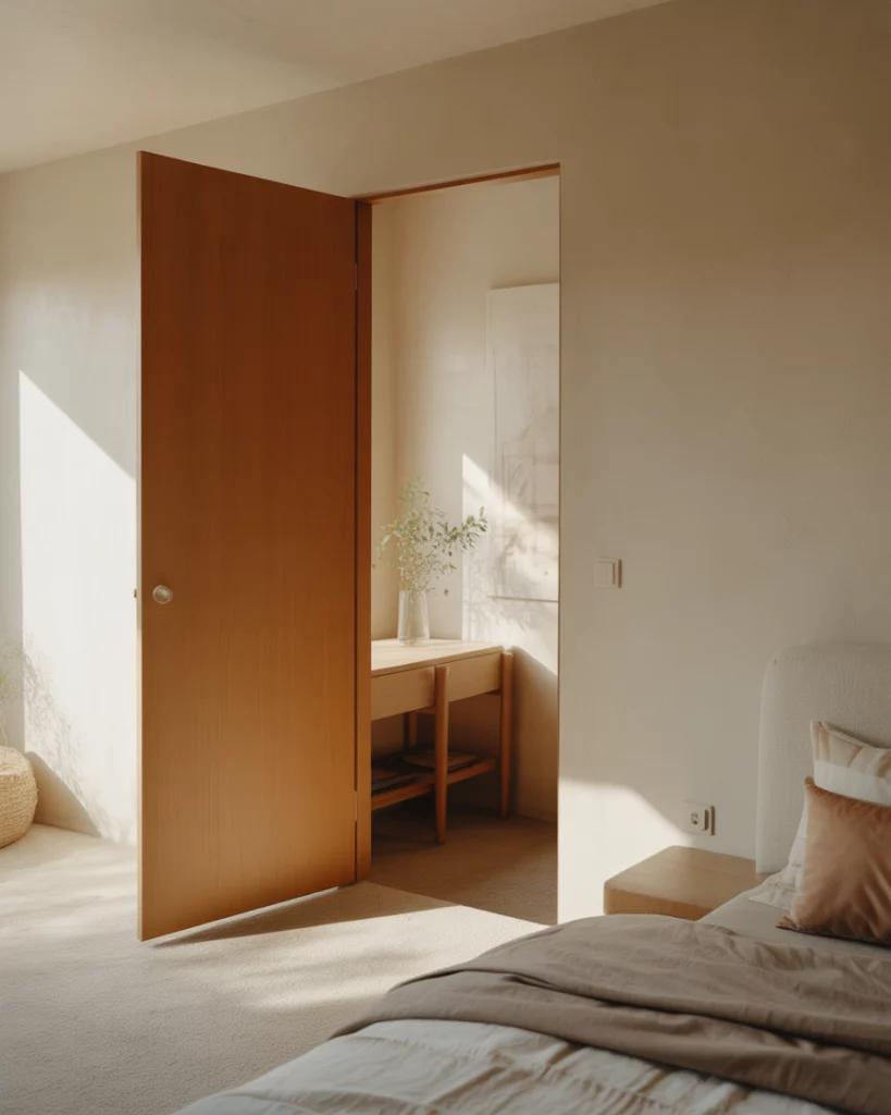 A pocket door can free surprising space in a tiny bedroom, eliminating the arc of a swing door and giving you more flexibility for furniture placement. It brings a clean, modern feel that pairs beautifully with streamlined layout solutions, refined decor finishes, and compact closet ideas. The result is subtle but transformative, especially in narrow rooms.
