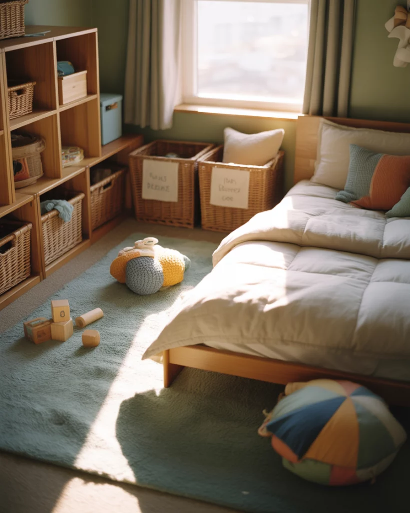 Open cubes keep kids’ essentials tidy and accessible, perfect for small bedrooms that must juggle sleeping, playing, and learning. The modular nature suits ideas for kids, bright decor moments, and flexible setups. Everything gains a home, and the room feels instantly more manageable.