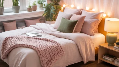 8. Soft Lighting and Layered Textiles for a Cozy Retreat