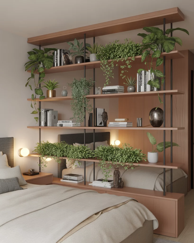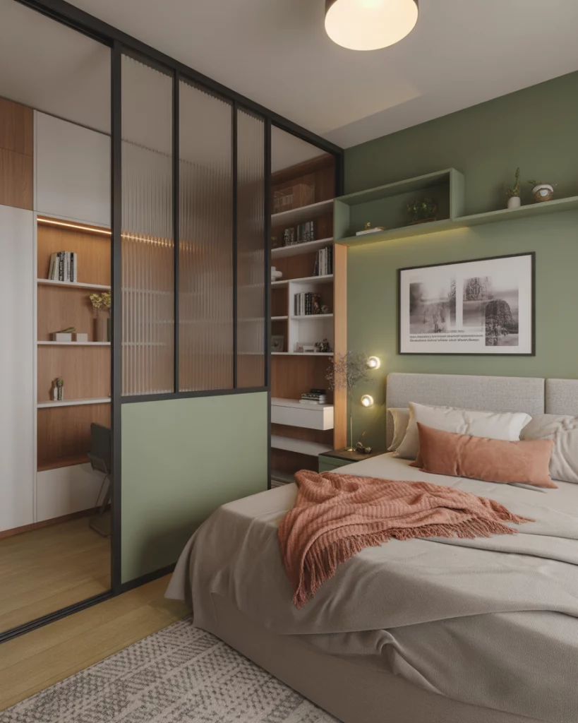 When your bedroom doubles as a layout for work or relaxation, a soft divider—like a fabric screen, shelving unit, or half-height wall—helps define spaces without making them feel closed off. This technique is super effective in studio apartments or shared rooms. Choose a divider with built-in storage or plants for extra texture and warmth.