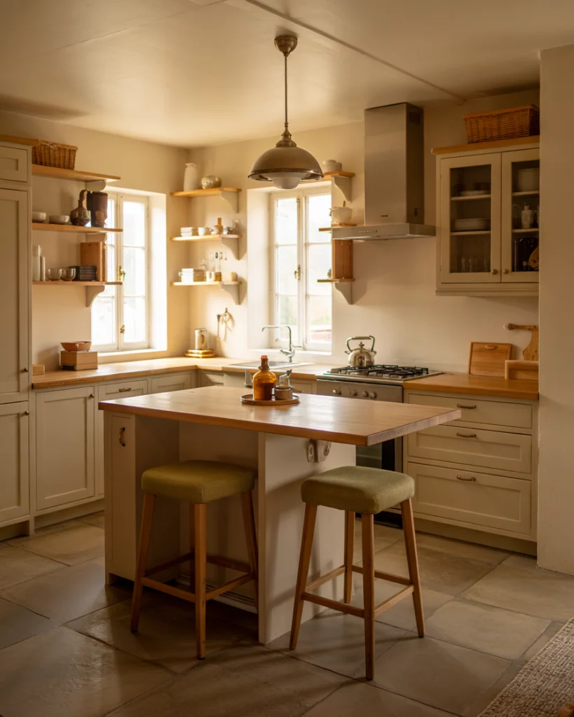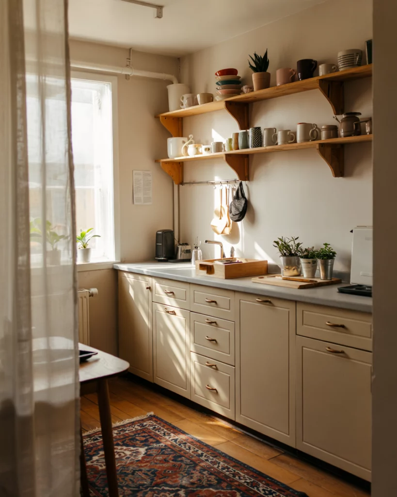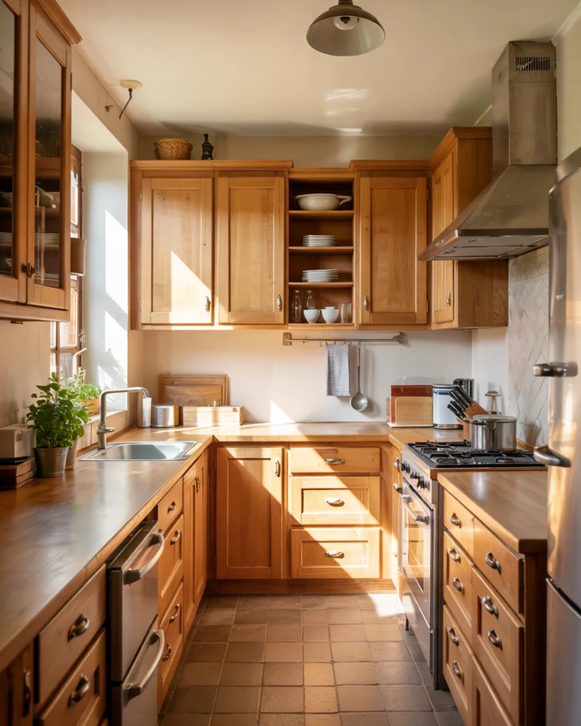 A rustic approach brings texture and comfort to small kitchen ideas in 2026. Natural wood, handmade finishes, and layered decorating details soften compact design layouts. The result feels collected over time rather than overly styled. A micro anecdote often shared by homeowners is how these kitchens become gathering spots despite their size. The warmth encourages lingering, coffee refills, and conversation.