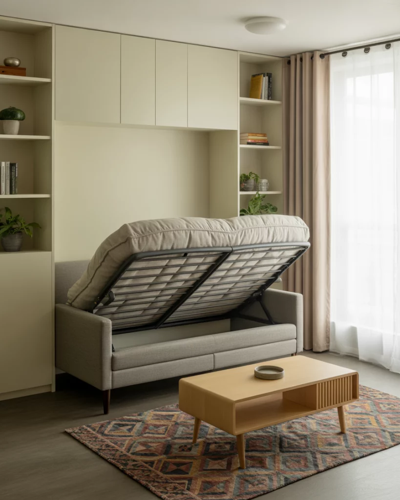 In one compact piece you can deliver an apartment cozy multifunctional hero. A sofa-bed with hidden drawers or internal lift-up compartments doubles as a sofa in daytime and a sleeping beauty at night. In my first tiny apartment, I once lived in a 280 sq ft stairwell, and that kind of sofa saved me from piling boxes in corners. Choose one with a streamlined frame so it stays very clean and doesn’t feel bulky. Pair it with cozy throws or rustic wood side tables to soften the modern lines.