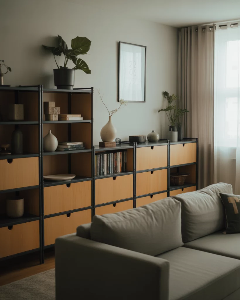 Using Ikea modular furniture pieces gives you affordable flexibility and a chance to mix materials—wood, metal, rattan—to strike the right tone. I’ve arranged small units in my own apartment for inserts like a media console, open cubbies, and a bench: mix solid wood doors, open cubes, and woven baskets. The strategic contrast adds depth in a tight layout. Because Ikea tends to scale for compact design, it fits A budget apartment well.