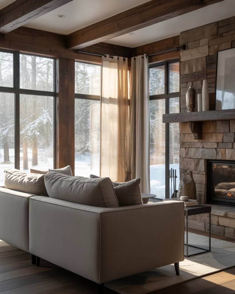 Combining reclaimed wood and matte black fixtures brings rustic warmth and industrial crispness together. This idea fits beautifully in a cozy tiny house or apartment modern loft. I once saw a designer use old barn beams over a sleek black fireplace wall—it was breathtakingly elegant yet simple. Keep the palette earthy with beige, charcoal, and warm metals.