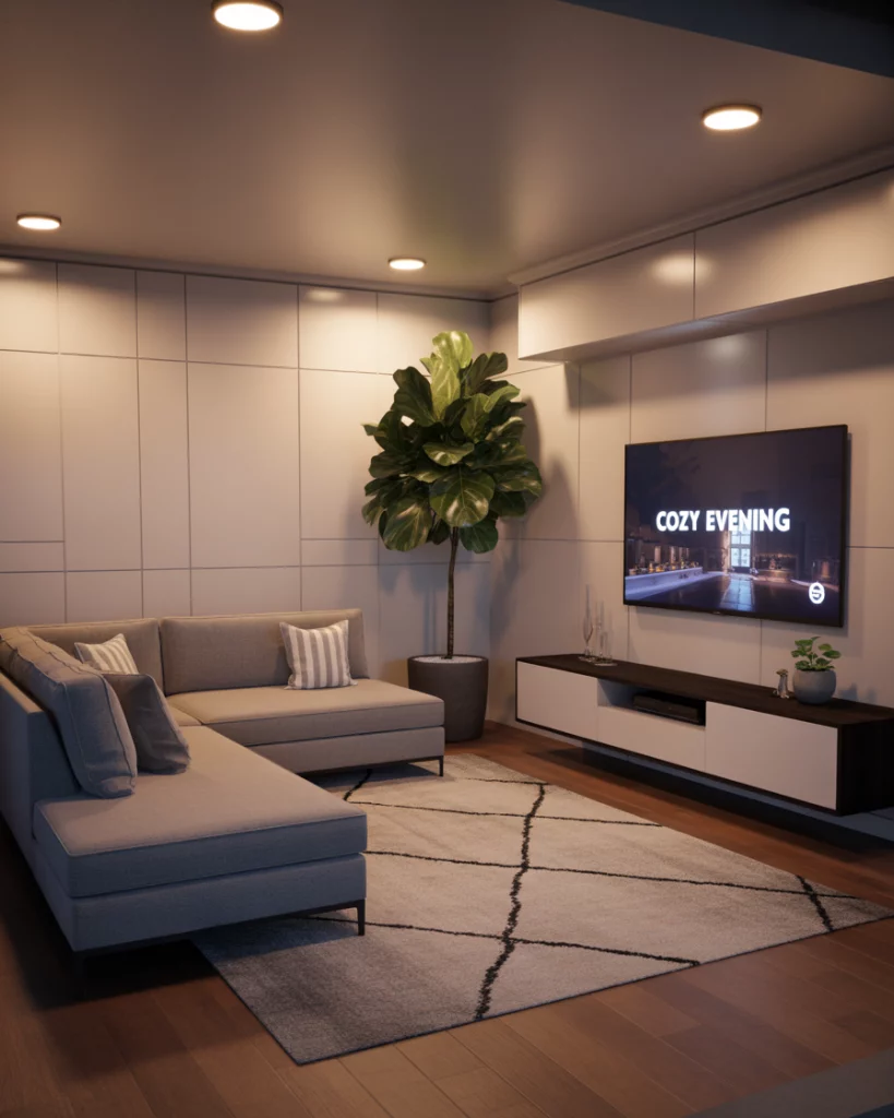 A perfect mix of color, texture, and light defines an Apartment cozy boho modern corner lounge. Think layered rugs, low floor cushions, and woven baskets for warmth. When I first layered Moroccan pillows under a rattan pendant lamp, the space suddenly felt very soulful and cozy. This style invites casual conversation and that “lived-in” ease that everyone wants in a modern apartment.