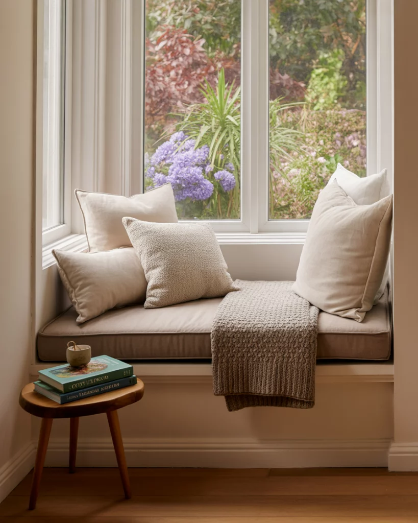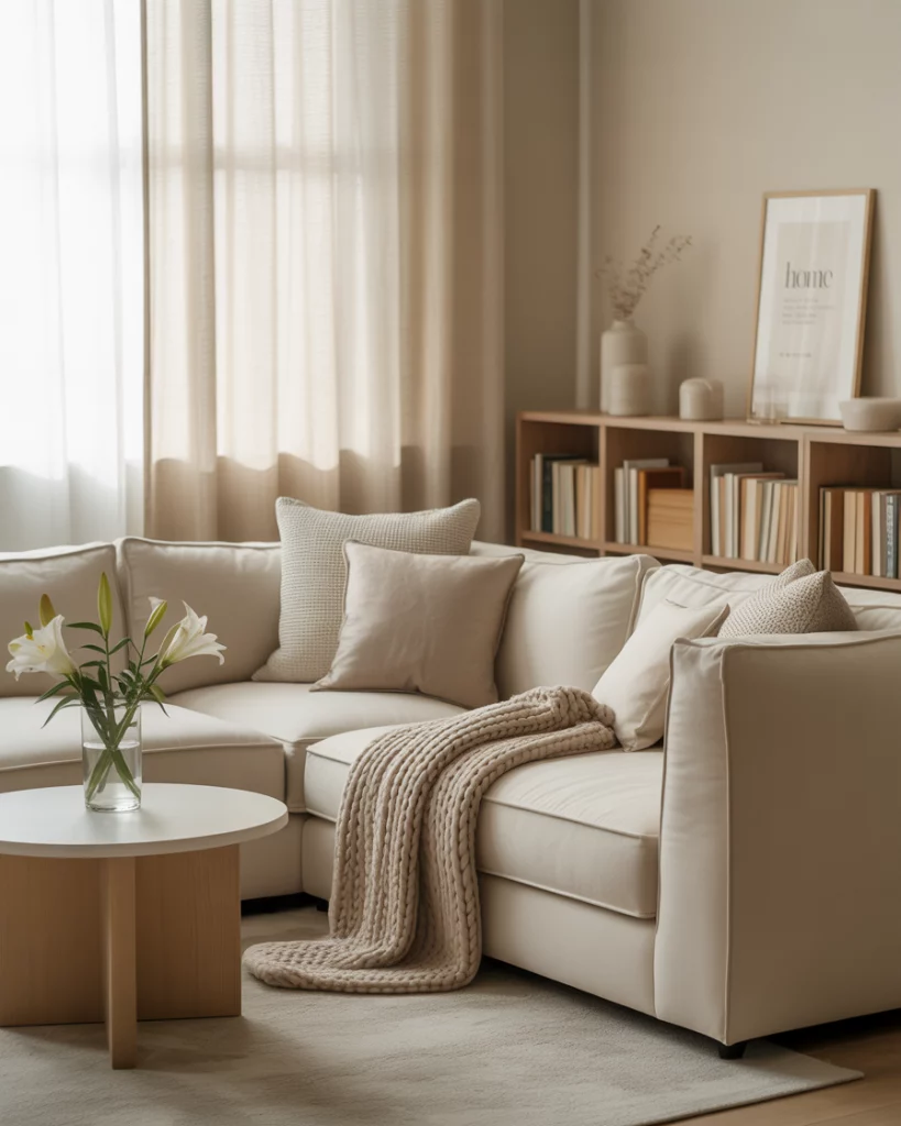 The Apartment cozy aesthetic thrives on harmony — think beige, taupe, and ivory layered with texture. I once helped a friend restyle her small apartment by removing bold accents and adding linen curtains, jute rugs, and wool throws. The result felt very cozy, light, and open. This palette lets your personality show through subtle decor rather than clutter. Add candles or pampas grass for warmth on a budget.