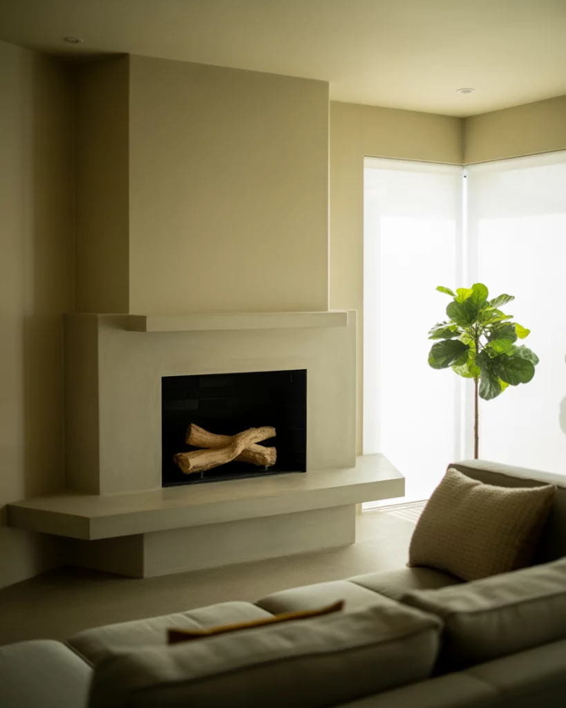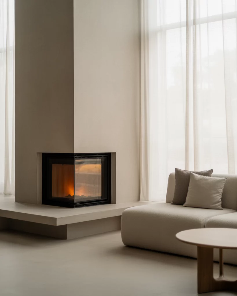 In a minimalist apartment, a sleek fireplace can become the emotional center of the room. When space is limited, placing it diagonally in a corner saves wall area for storage or a tv. I designed one like that for a friend’s cozy tiny house — the flame glow made evenings extremely soothing. Keep colors neutral and accessories minimal for timeless elegance.
