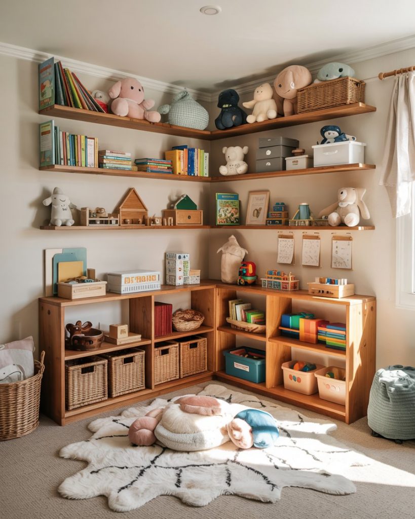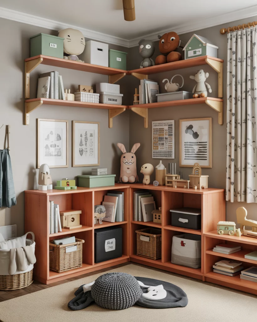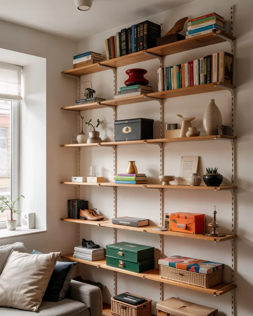 Wall-mounted shelves can create storage space in narrow entrywaysor as a bedroom wall. This should apply to books, files, and even baskets of toy and crafting items. According to design information sources, wall shelving and vertical storage remain best in 2026.