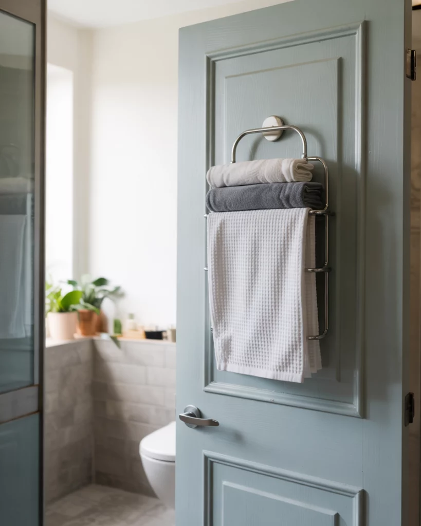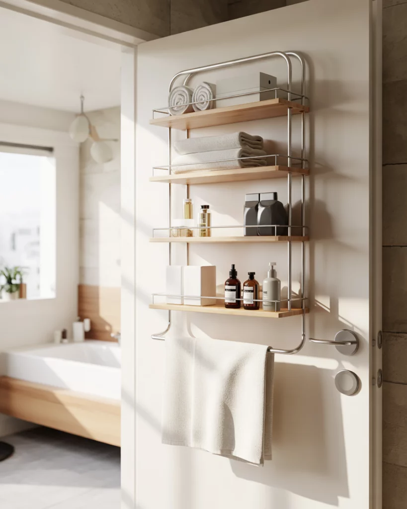 Another innovative solution in storage solutions for compact apartments can come from the creation of over-the-door racks. They can add more storage space in bathrooms, closets, and laundry rooms for towels, clothes, and other items. This solution can add more space at a much lower cost.