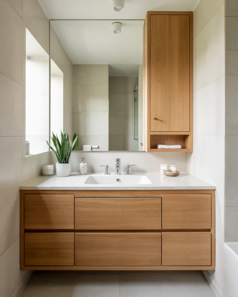For bathroom and bedroom areas or locations at home, the best solution for maximizing tiny spaces can come from the elevated placement above the floor of wall-hung vanities or wall-hung wardrobes. This type of solution gives the illusion of needing more space. This can create more room below the installations for adding more storage space. Among the latest trends recommended for 2026 designs are floating vanities.