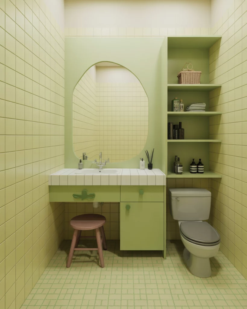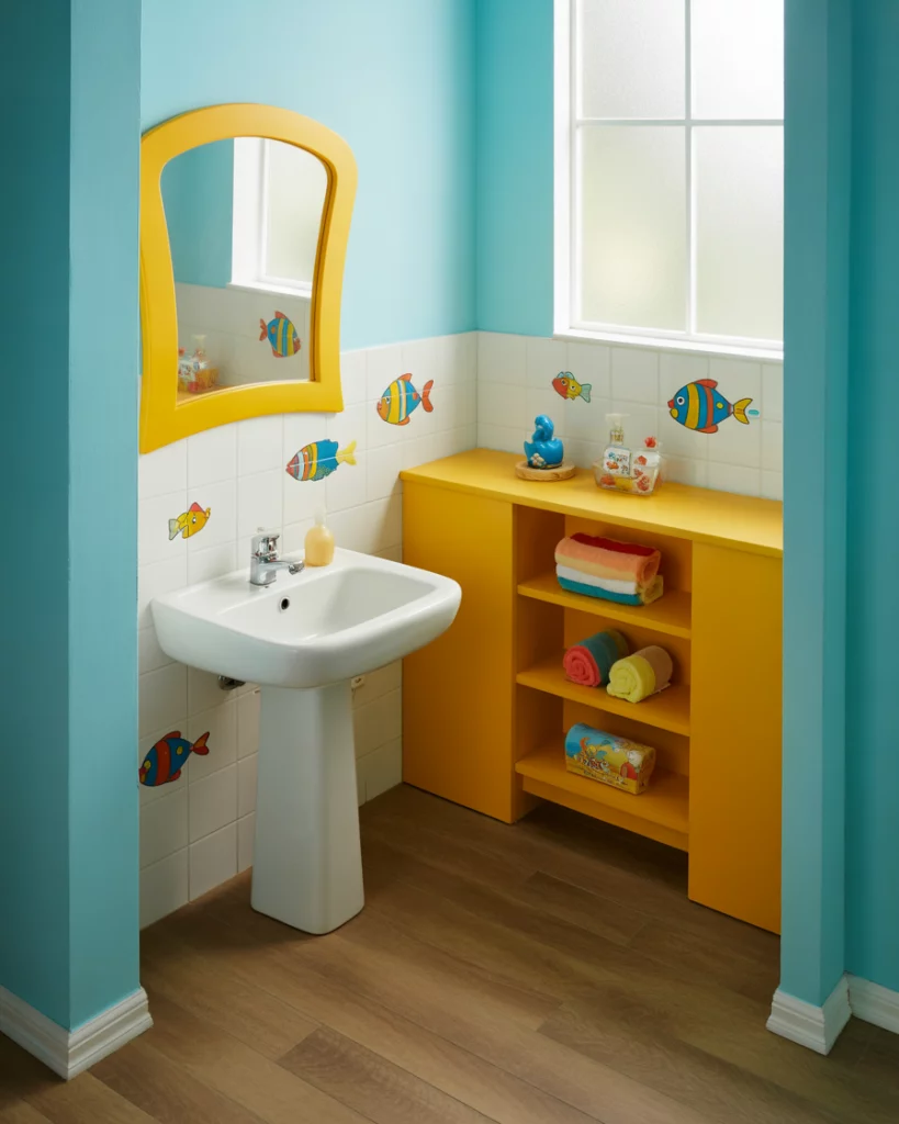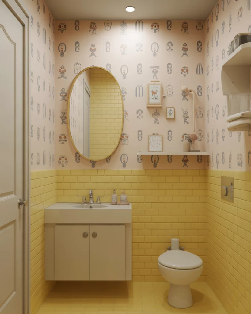 “A guest bath functional for families is all about fun and games from »Kids and Fun,« where bright colors, an interesting theme, and functionality are combined. In small apartment homes, my pals have incorporated wipe-off wallpapers and single-sink designs for a small guest bathroom space suitable for visiting kiddies and still very functional and fun.