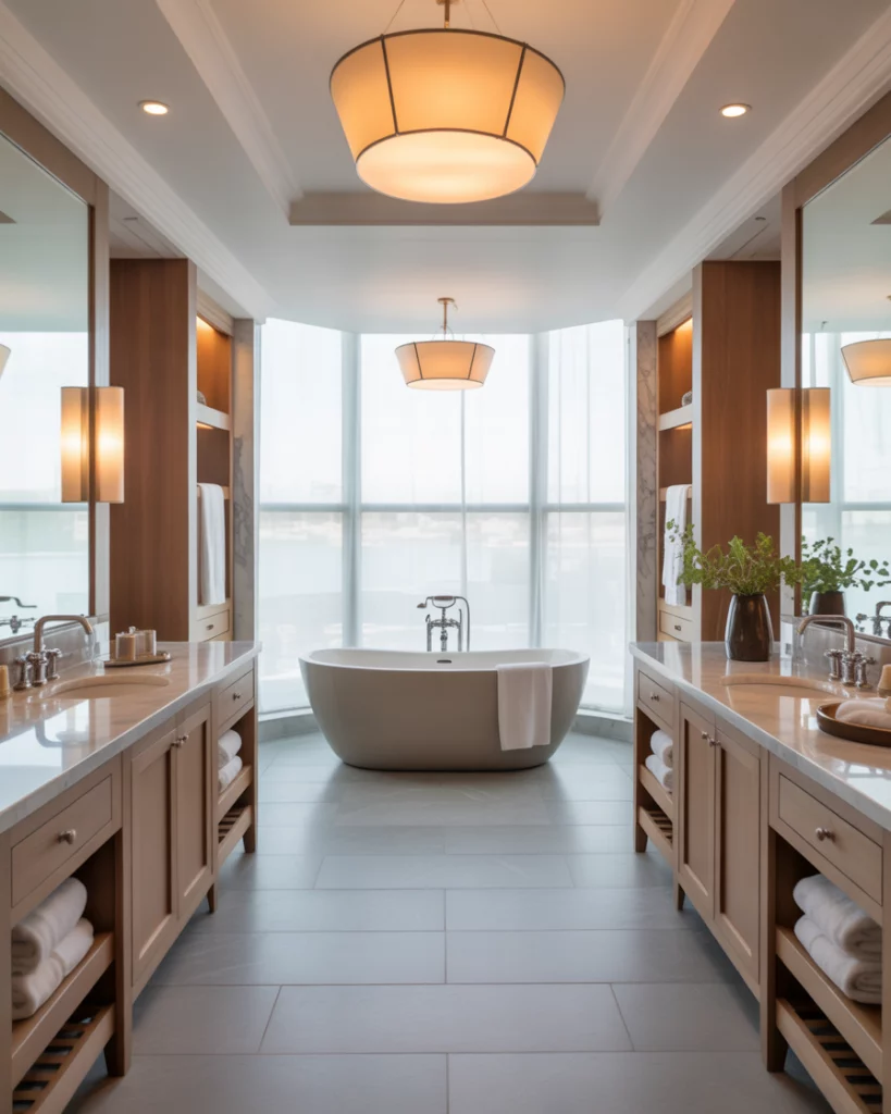 For homeowners with a large layout, a spacious guest bath can feel like a true retreat. Think double-door entry, a wide color palette, and a deep tub or shower-tub combo. The luxury feel comes naturally with generous proportions, yet the design stays approachable when kept elegant and modern.